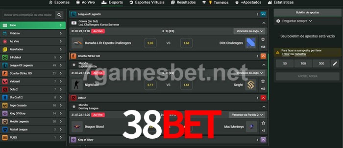 A aposta 38Bet oferece aos jogadores a experiência mais conveniente de apostas em eSports!